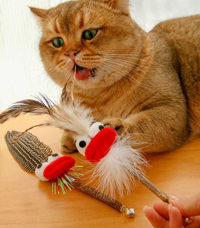 Say hello to the funniest little feather friend your cat will ever meet! With its silly big beak, fluffy feathers, and natural catnip wood stick, this toy is designed to spark endless curiosity and playful pounces.