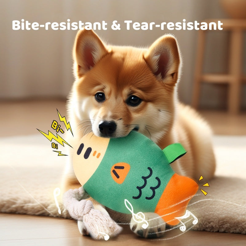 ✨ Cute & Cuddly Design – Adorable chubby fish shape makes it not only a toy but also your pup’s soft buddy to snuggle with.